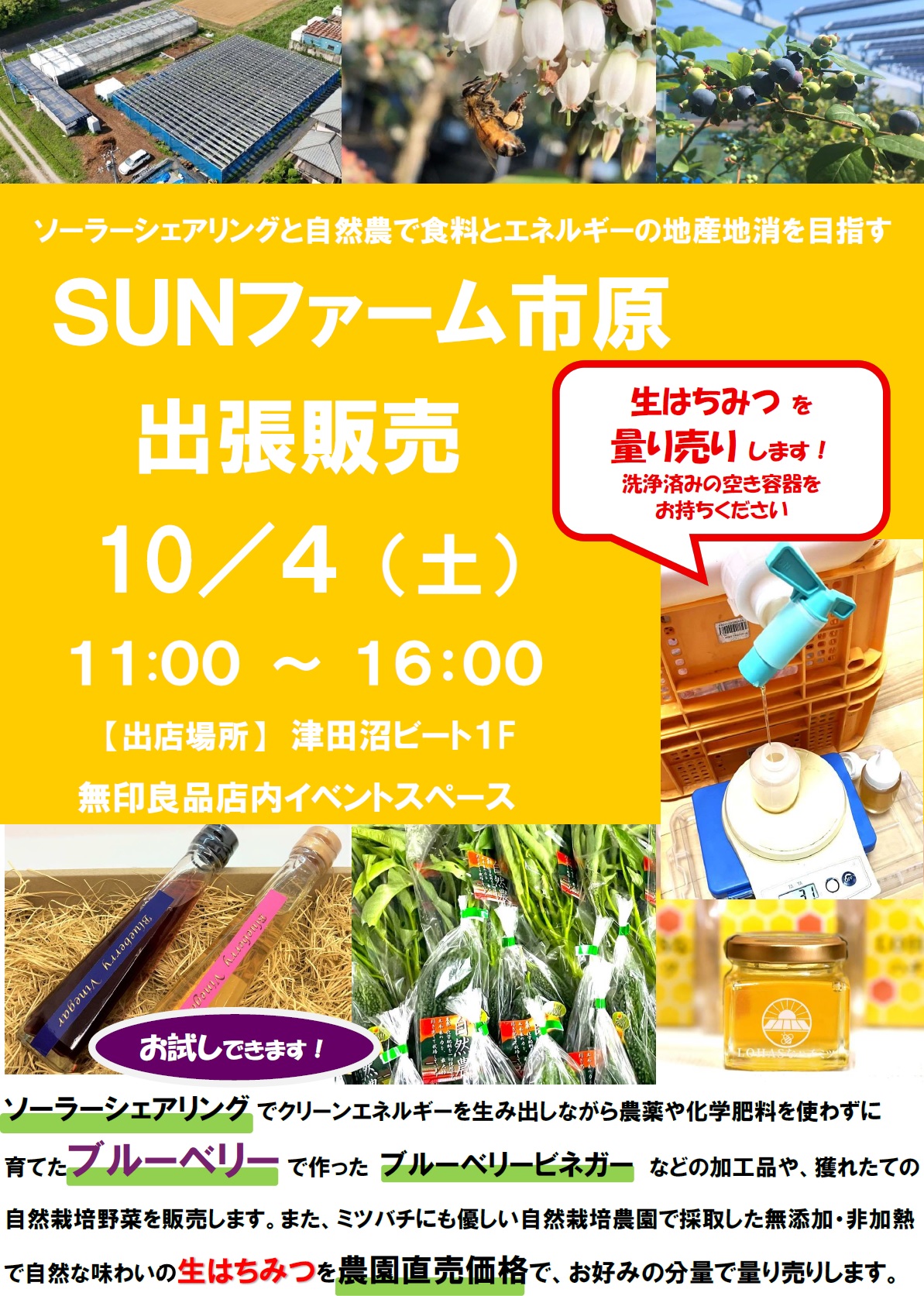 10月4日(土)11:00~16:00に無印良品津田沼ビート店で今年最後の出張販売を行います。