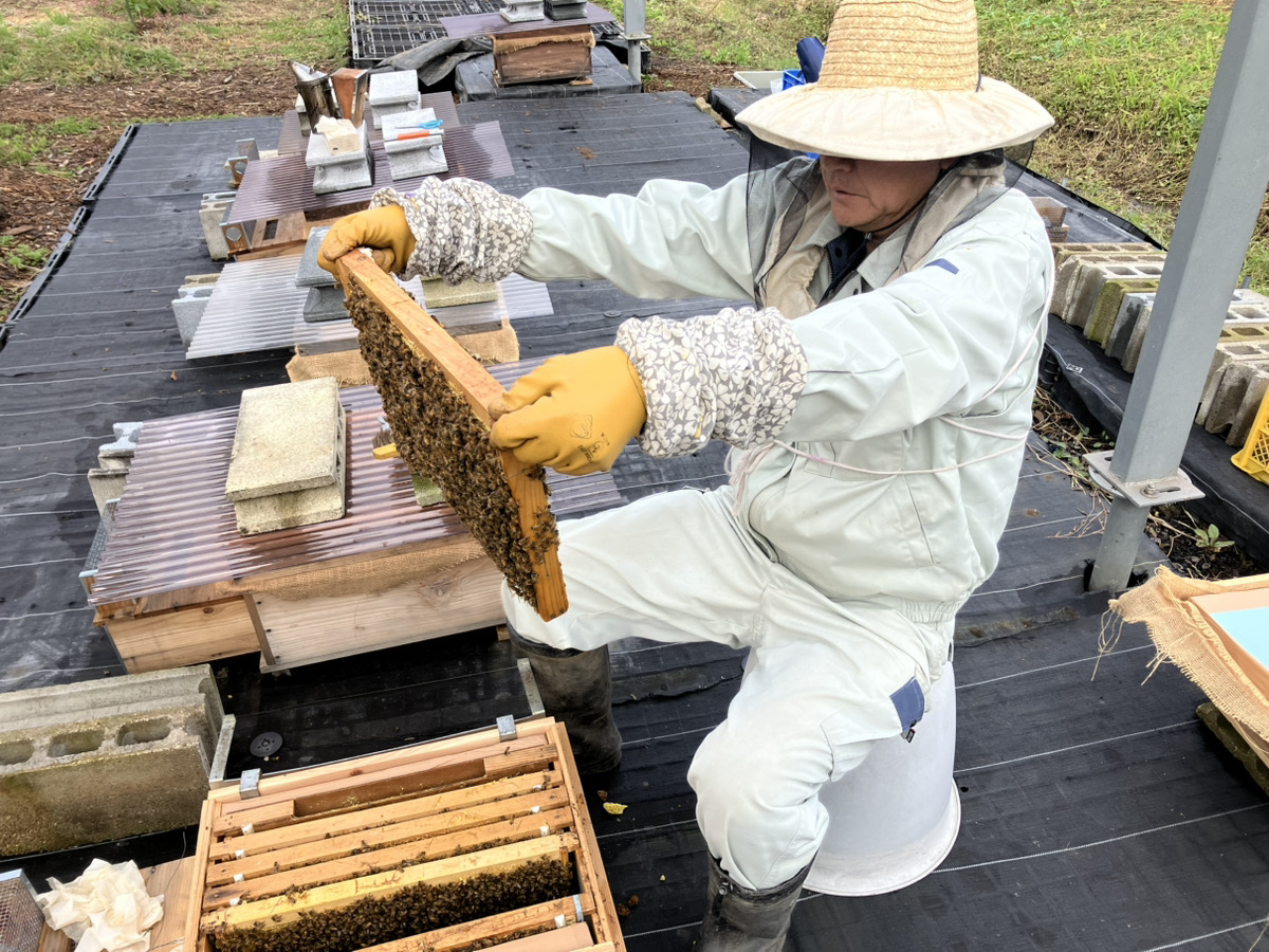 ミツバチの合同とは、複数の巣箱を一つに統合する作業です。一般的には、弱った群れを他の巣箱に合流させる方法で行われます。合同の手順としては、まず巣箱を物理的に近づける、または一方の巣箱を他方の巣箱の隣に移動させます。次に、巣箱から巣枠を合流させる群れの巣箱に移します。農薬や化学肥料を一切使用しないアグリボルタイクス自然栽培農園では養蜂も展開しています。