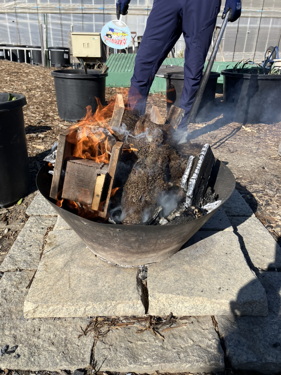 年明け早々懇意にさせて頂いている猟師さんのところで捌かせて頂いたイノシシですが、普段は一般ゴミとして出されている毛皮と頭の部分についても農園まで持ち帰り、丁寧に感謝の意を込めて無煙炭化器で火葬しました。炭化したイノシシの毛皮と頭や骨については農薬や化学肥料を一切使用しないアグリボルタイクス自然栽培農園内における土壌の一部として命の循環のお手伝いをしました。