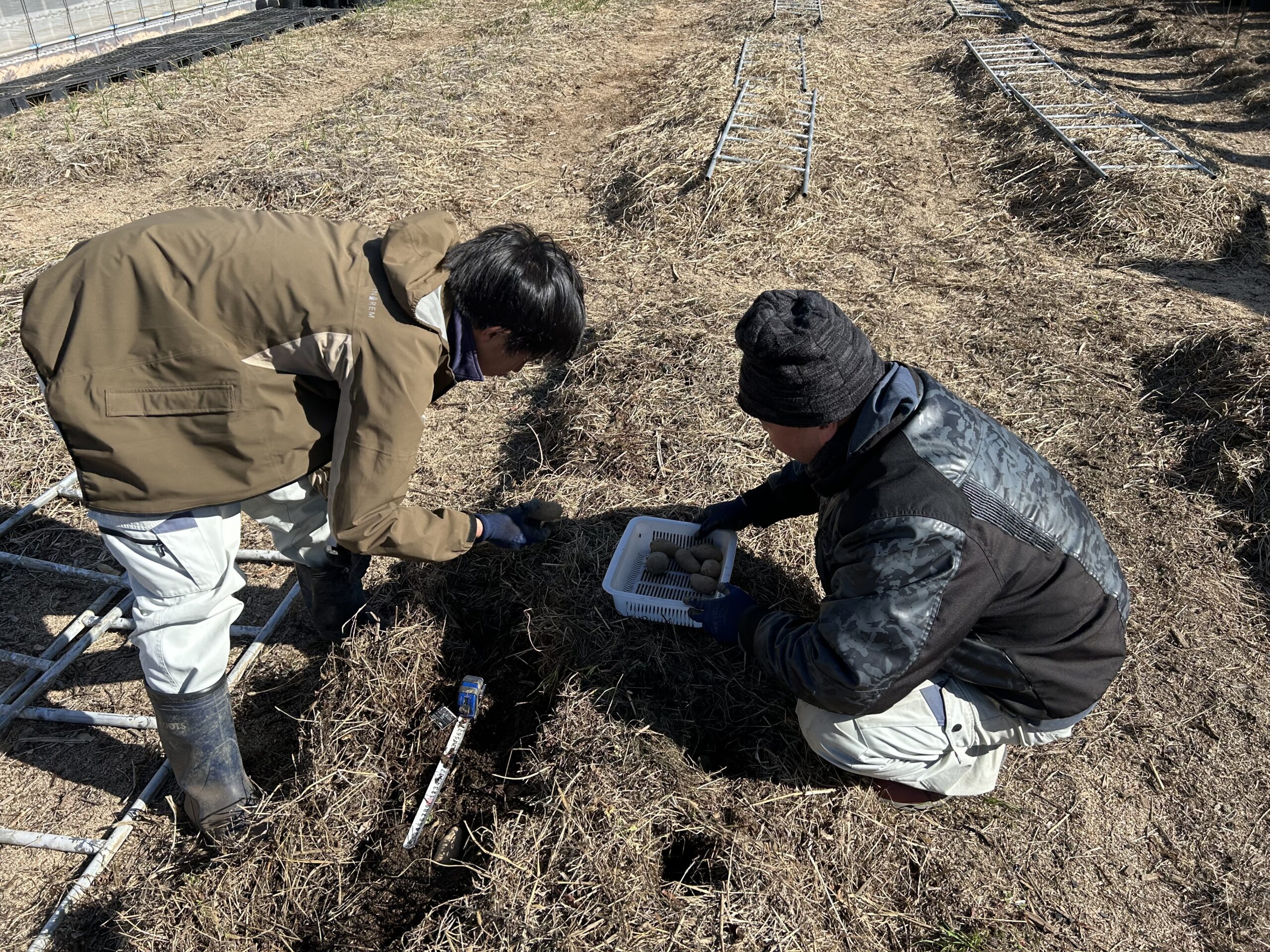 ジャガイモの早春植え(春植え)は、2月〜3月頃に種芋を植え付け、6月頃に収穫する家庭菜園で最も人気のある作型です。霜が降りなくなってから植えるのが基本で、適切な時期とポイントを押さえれば初心者でも簡単に栽培できます。農薬や化学肥料を一切使用しないアグリボルタイクス自然栽培畑ではジャガイモの早春植えを終えました。